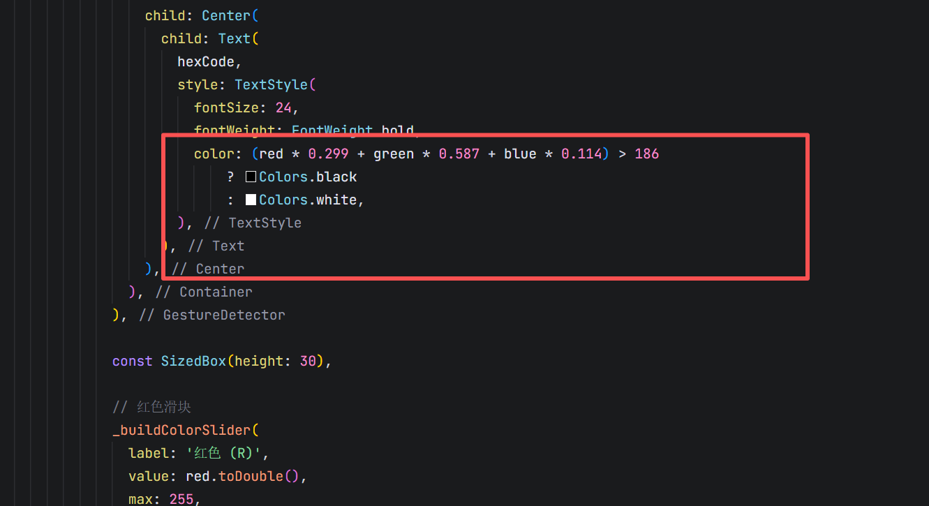 本文将超越基础实现,聚焦于 工程细节中的技术决策:如何高效构建滑块组件?如何确保文本在任意背景色下可读?如何安全操作剪贴板?以及如何利用 Flutter 的声明式 UI 实现真正的"所见即所得"。