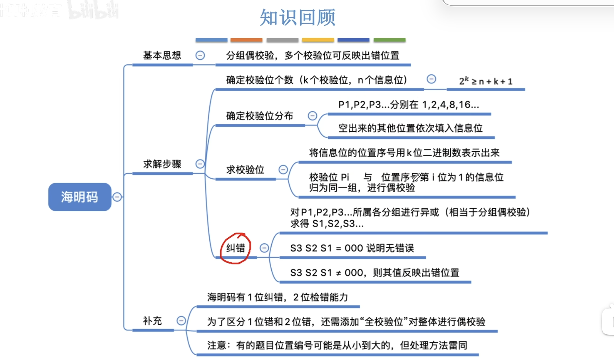 但是如果两个位置同时跳变,会出现两个异或结果为1的情况,但是却不知道哪个位置出现了错误。所以海明校验法无法处理两个位置同时跳变的纠错。