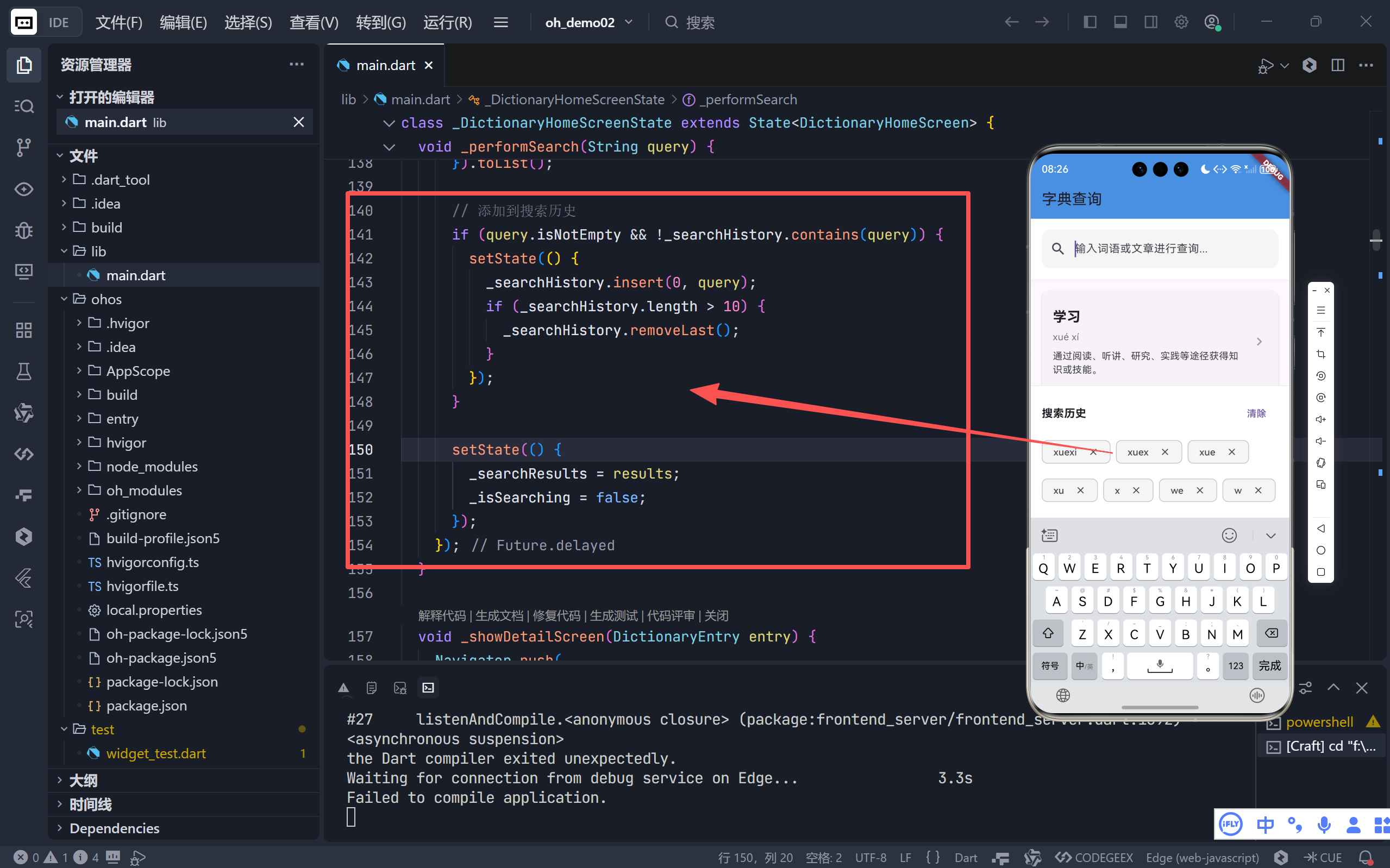 DictionaryHomeScreen: 主页,负责搜索、结果显示和历史记录管理。DictionaryDetailScreen: 详情页,展示单个词语的完整信息。