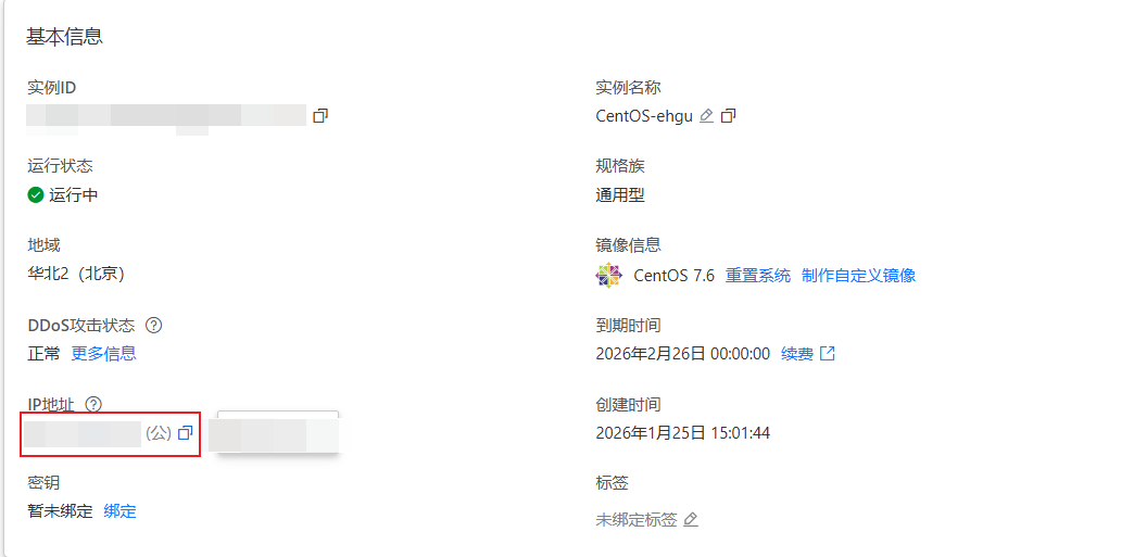 - 云服务器打开控制台,进入实例,复制ipv4地址