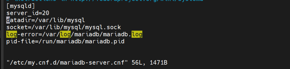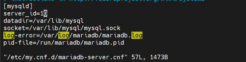 [root@webserver1+1 ~]# vim /etc/my.cnf.d/mariadb-server.cnf