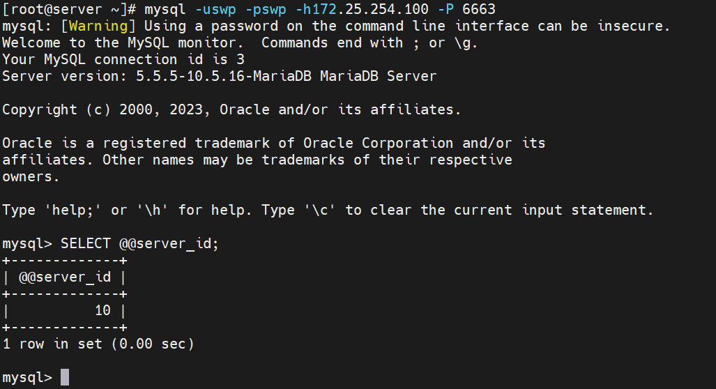MariaDB [(none)]> SELECT @@server_id;