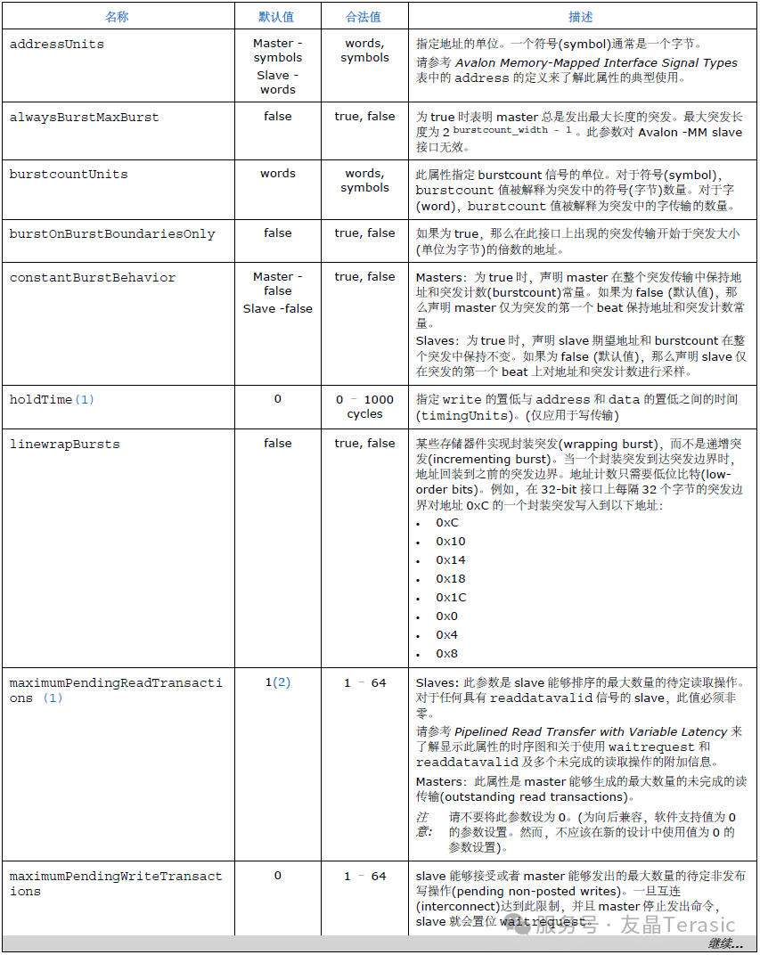 表10 Avalon-MM接口信号属性