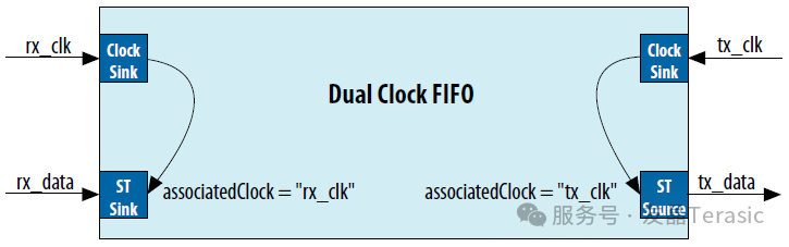 所有同步接口都有一个associatedClock 属性,该属性指定组件上的哪个时钟源(clock source)用作接口的同步参考,如图所示。