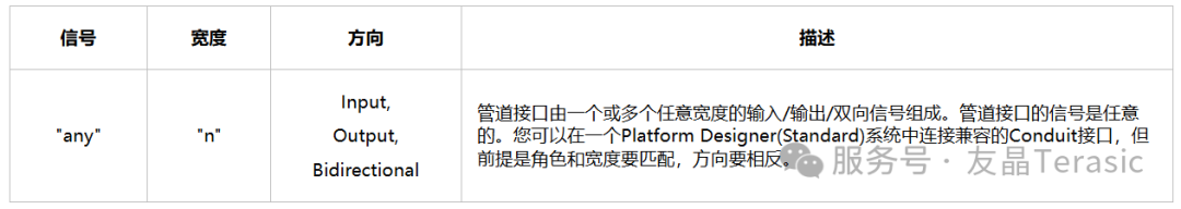 Avalon conduit接口的信号可以是任意的,并且该接口的信号没有任何属性。