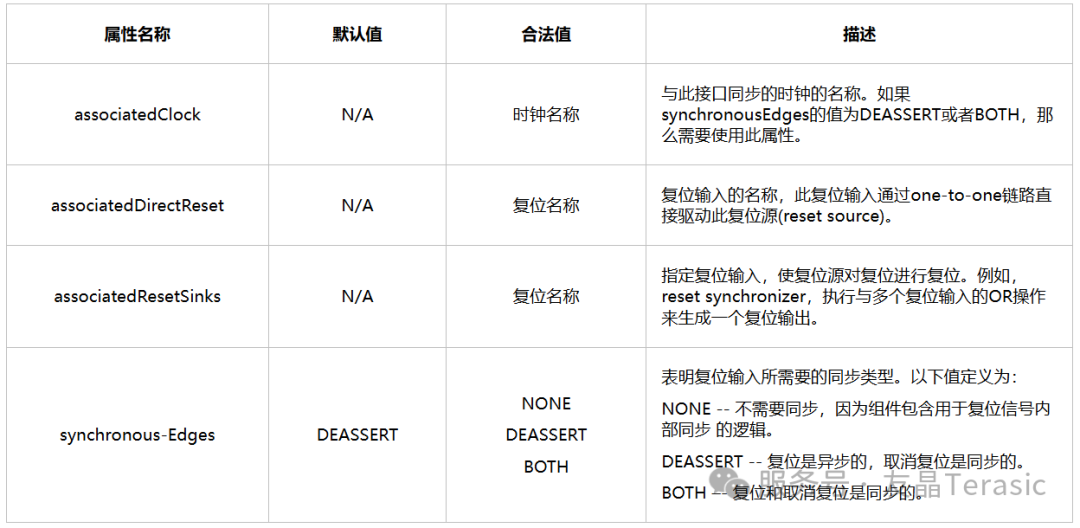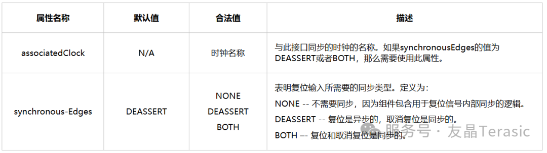 所有同步接口都有一个associatedReset属性,用于指定哪个复位信号对接口逻辑进行复位。