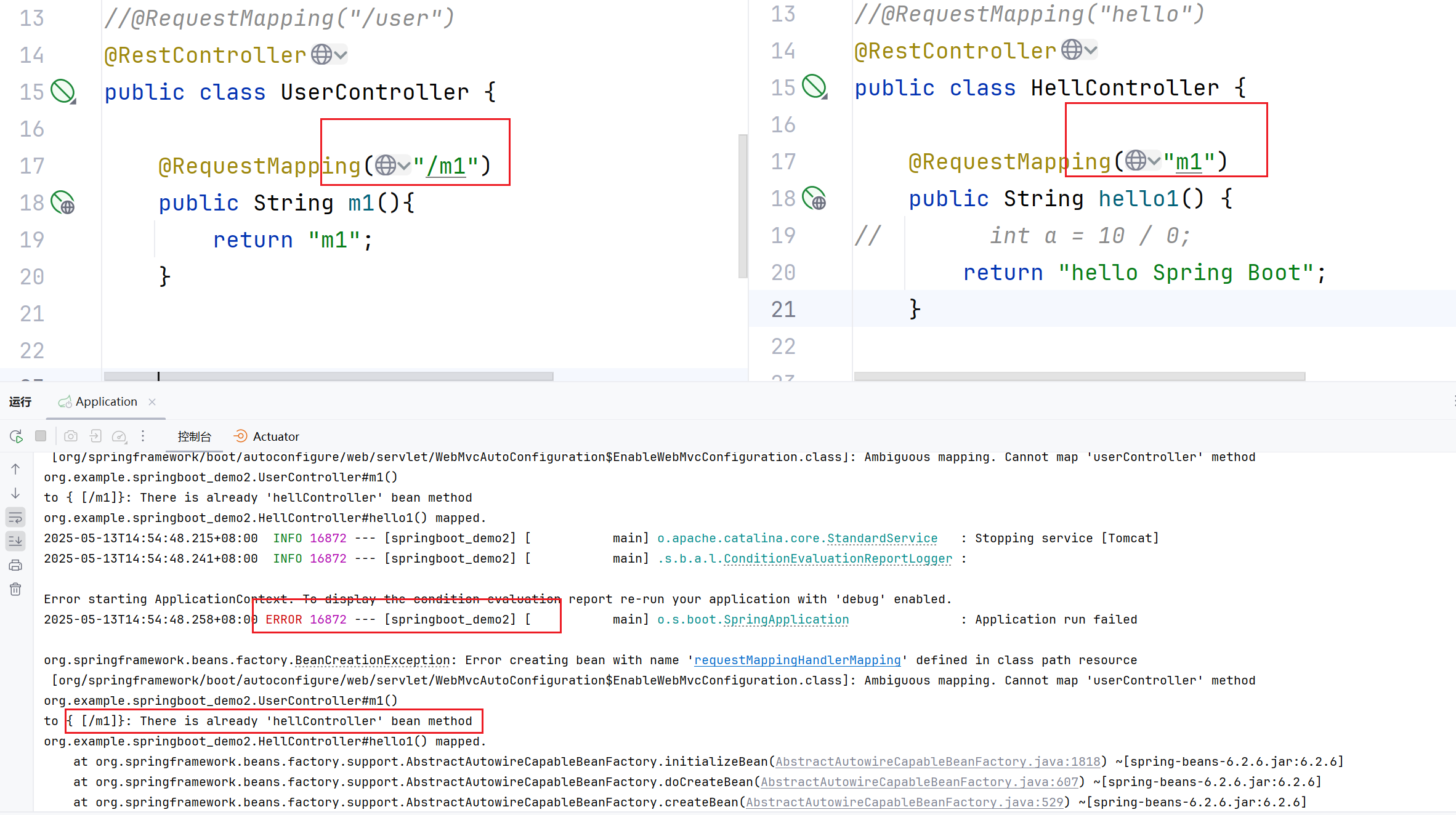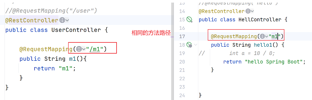 @RequestMapping :不能有两个相同的方法路径,因为包含了所有的请求方式,一旦确定资源路径,资源路径 和 请求方式 就立刻唯一确定了。