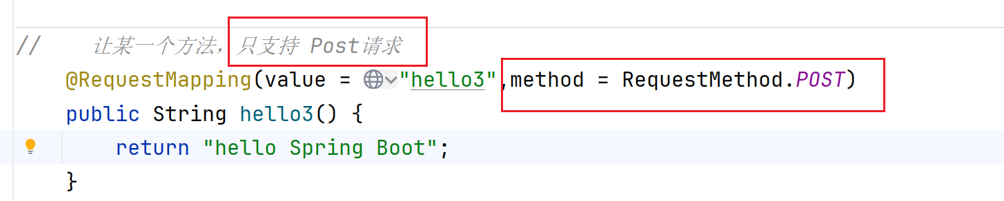 @RequestMapping(value = "hello3",method = RequestMethod.POST)