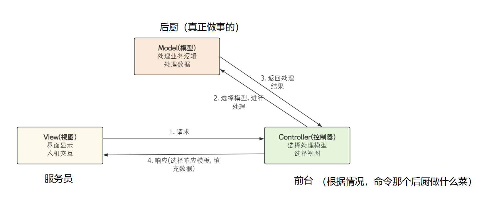 服务员 就是 View(视图),负责接待客户,帮助客户点餐,以及给顾客端饭?