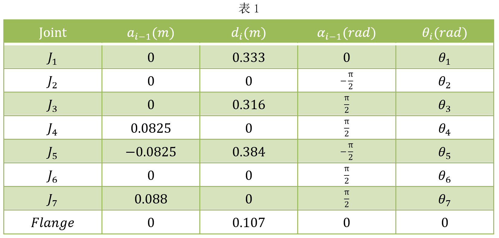 % 关节i:使用连杆i-1的坐标系
