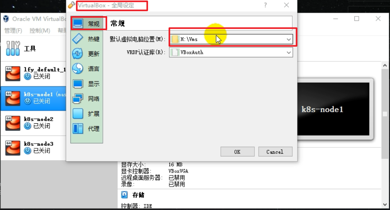 - 打开 VirtualBox → 「管理」→「全局设定」→「常规」→ 修改「默认虚拟电脑位置」(如 D:\VirtualBox_VMs)→ 确定保存。