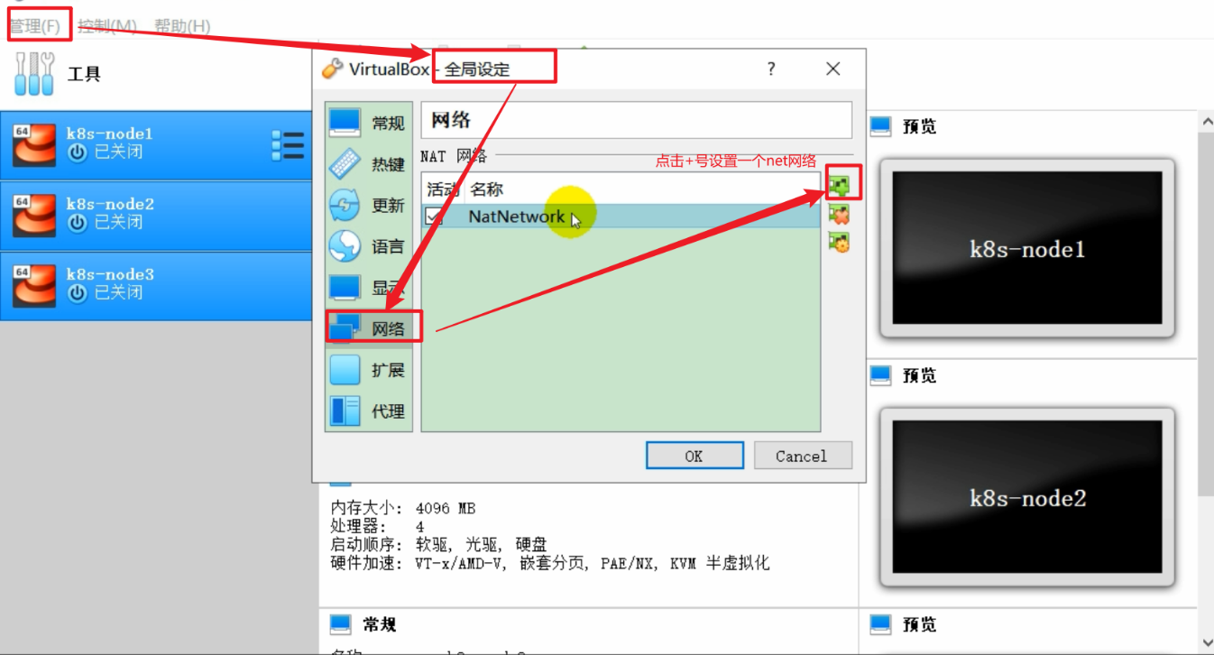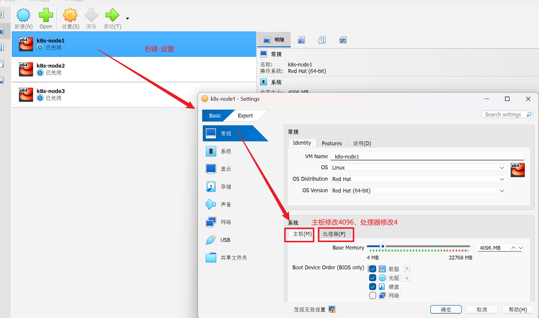 2.4、按下面的步骤安装好之后,可以再更改每个节点的主板 和 处理器 改大一点,只要自己的电脑能支持就行了