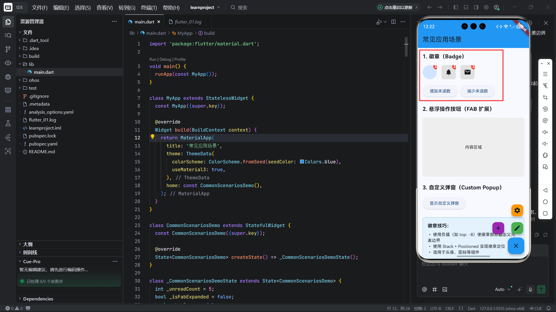 在复杂的 UI 设计中,层叠布局(Stack Layout) 是实现元素重叠、悬浮效果、自定义组件的核心手段。Flutter 的 Stack 与 Positioned 组合提供了强大而灵活的绝对定位能力,广泛应用于徽章提示、悬浮按钮、自定义弹窗等场景。