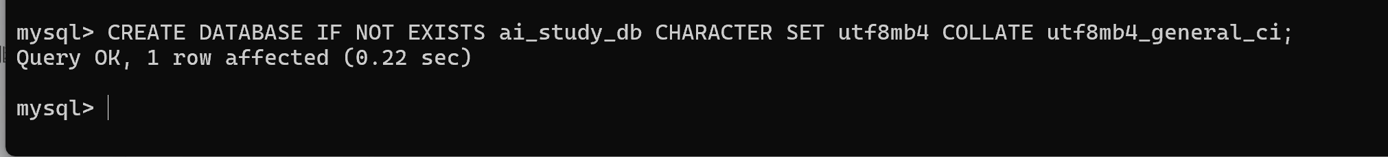 CREATE DATABASE IF NOT EXISTS ai_study_db CHARACTER SET utf8mb4 COLLATE utf8mb4_general_ci;