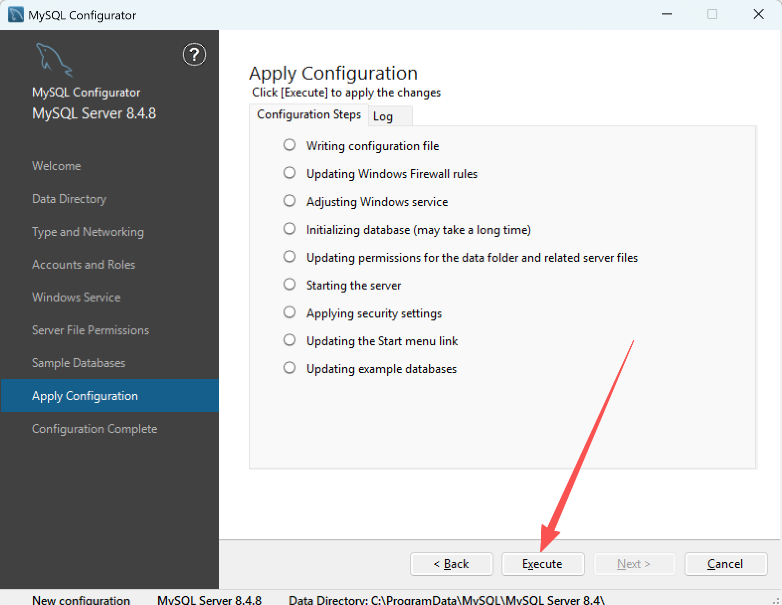 直接点击界面底部的「Execute」按钮,触发配置执行:执行过程中,列表项前的圆圈会逐步变为勾选状态(表示对应步骤完成);