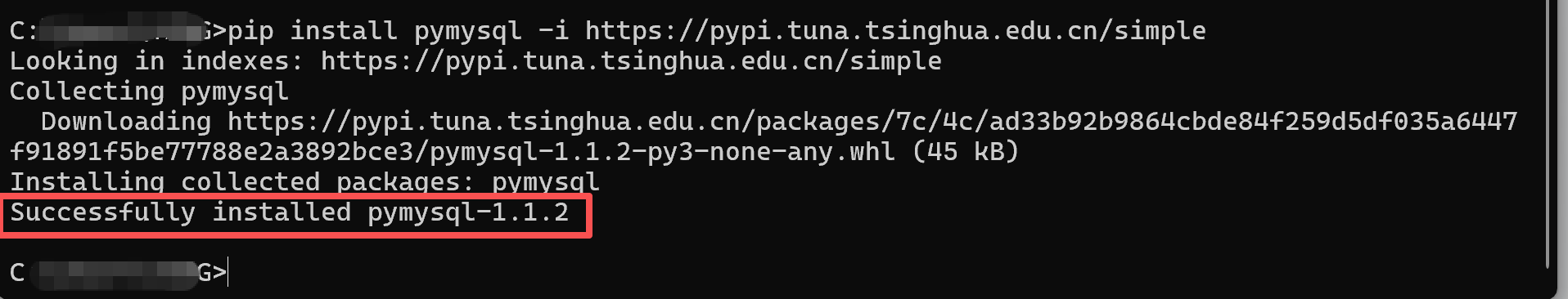 - 验证安装成功:无报错,且提示「Successfully installed pymysql-x.x.x」,说明安装成功。