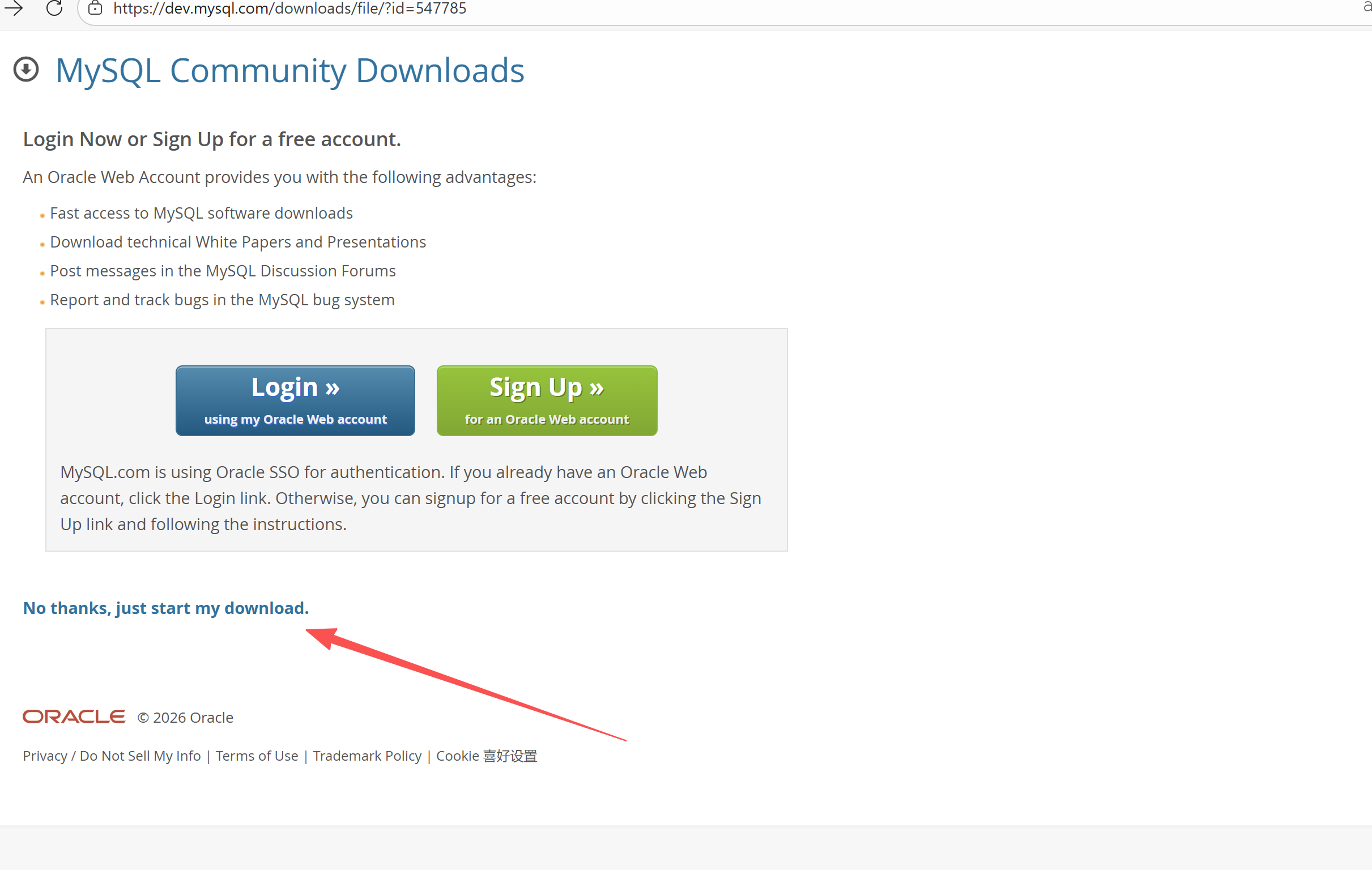 - 无需登录 / 注册,直接点击「No thanks, just start my download.」开始下载。