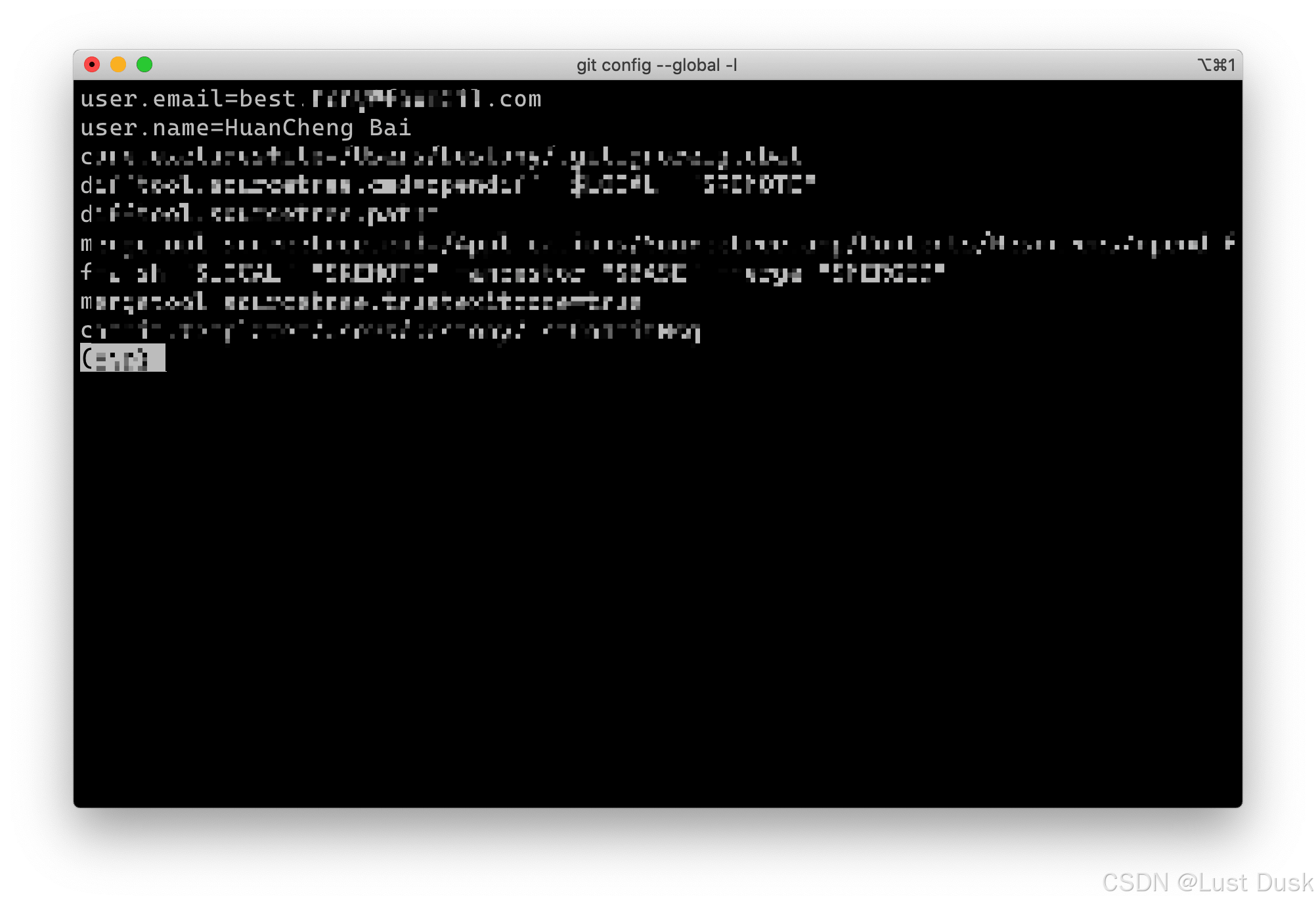GitHub 基于 Git 版本控制系统构建,而 Git 在使用过程中,要求用户预先配置个人用户名(Username)和电子邮箱(Email)信息,如同一下一样。