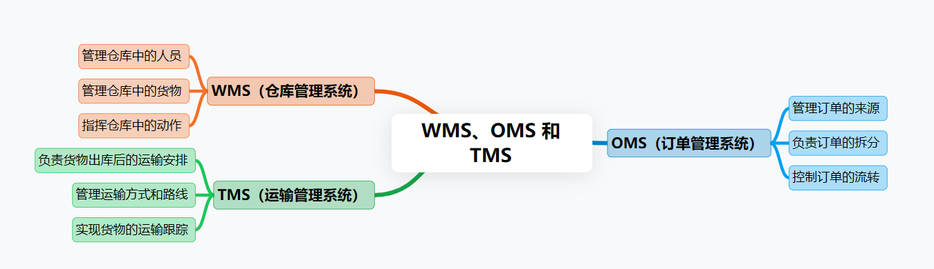 OMS 决定发不发, WMS 决定发得对不对, TMS 决定发出去之后顺不顺。