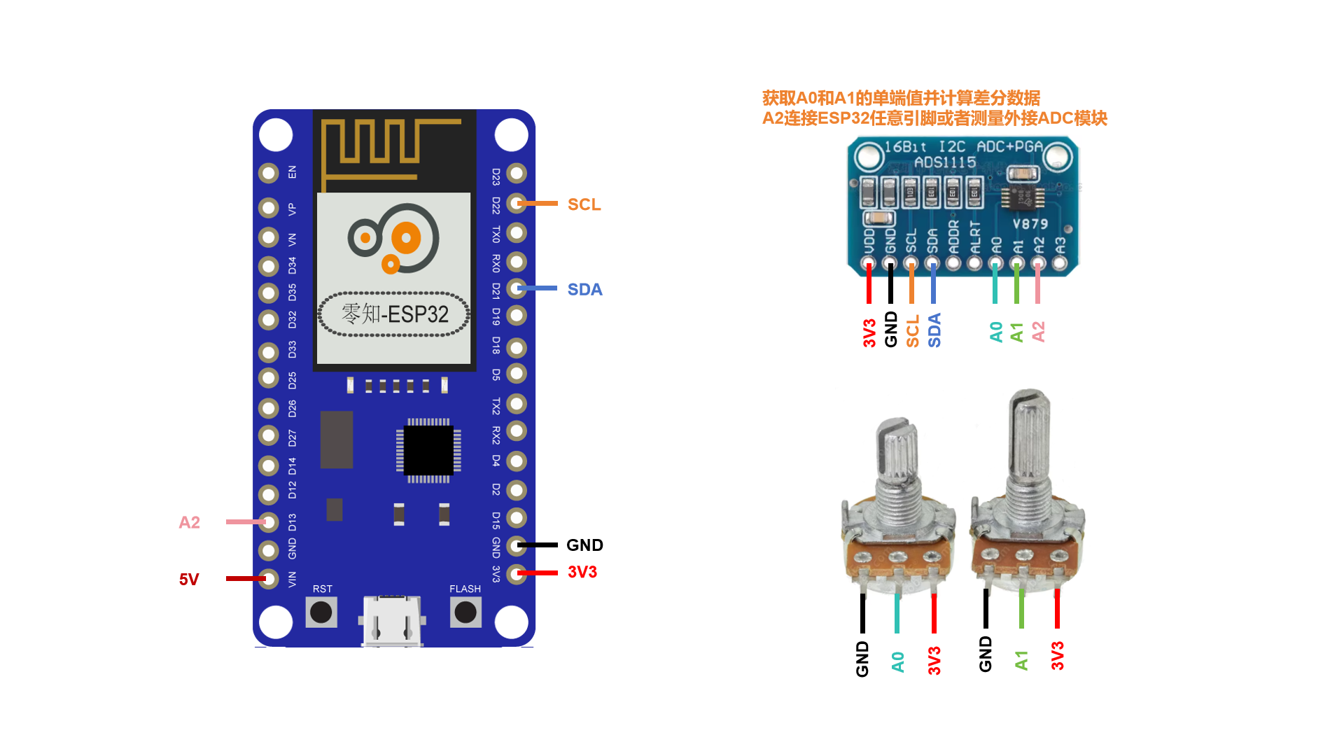 PS:旋转电位器和ADS1115 ADC模块都采用系统3.3V供电