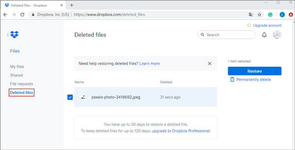 步骤3.点击屏幕顶部的**"已删除文件"**选项。
