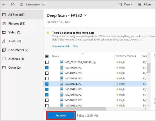 04选择要恢复的文件,然后单击**"恢复"**按钮。软件将提示您选择计算机上保存恢复文件的位置。