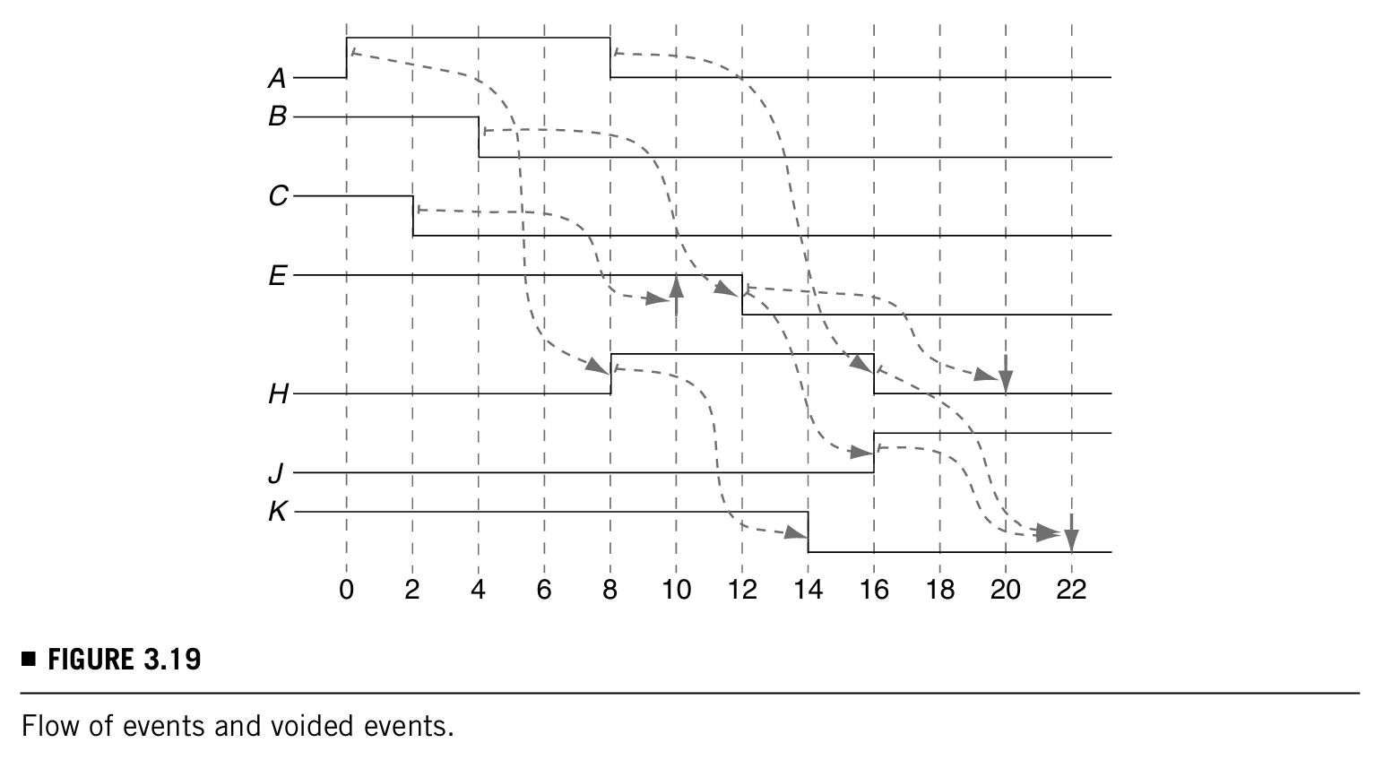 下图就是一个priority queue,根据时间顺序有time stamps,每一个time stamp对应水平方向上的各个事件: