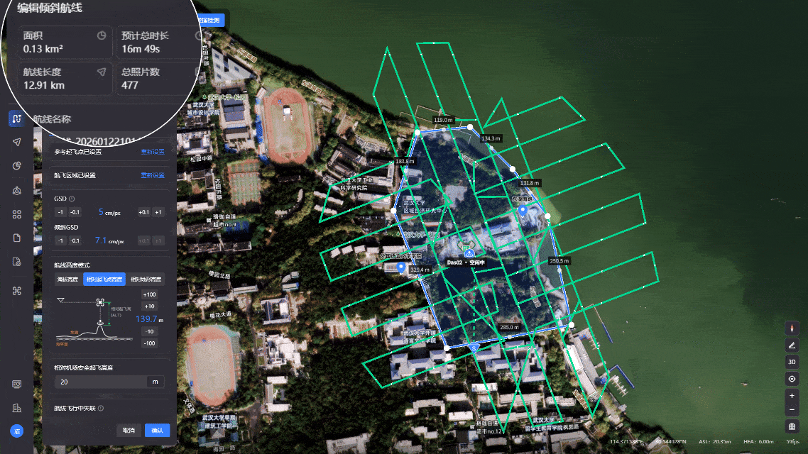 飞行 任务管理 智能化: 新增飞行计划日历视图与重复执行策略,支持按天/周/月频率进行任务配置,自动检测计划冲突;新增空域管理,可绘制自定义限飞区,搭配天气阻飞、飞行前检查,强化飞行安全。