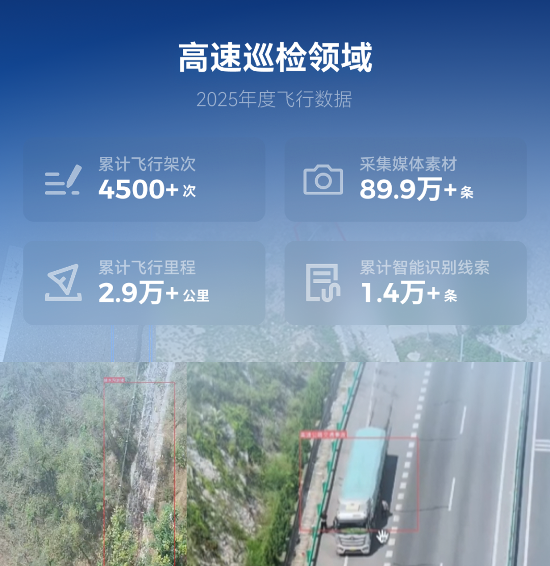 针对道路设施养护与交通秩序管控需求,通过智能巡检航线规划与AI识别能力,精准捕捉排水管淤堵、道路裂纹、交通事故、应急车道占用等问题,同时支持巡检日报、周报、月报自动导出,为路政部门的养护决策、违章查处与安全管理提供精准、高效的数据支撑。