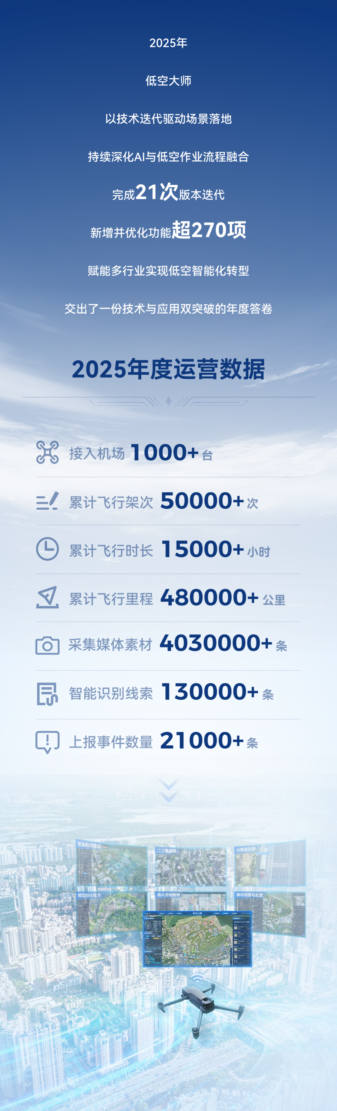 作业模式扩展,协同效率提升: 新增多路直播监控(最高25路)、直播分享、飞行辅助影像显示等功能,满足多团队协同作业需求;AI识别联动决策,可触发悬停、自动喊话提醒、短信预警,实现从实时感知到实时干预的跨越;新增接警处置功能,支持手动/接口创建警情,自动匹配最近机场前往处置。