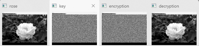 # 对图像rose和秘钥图像key进行按位异或运算加密