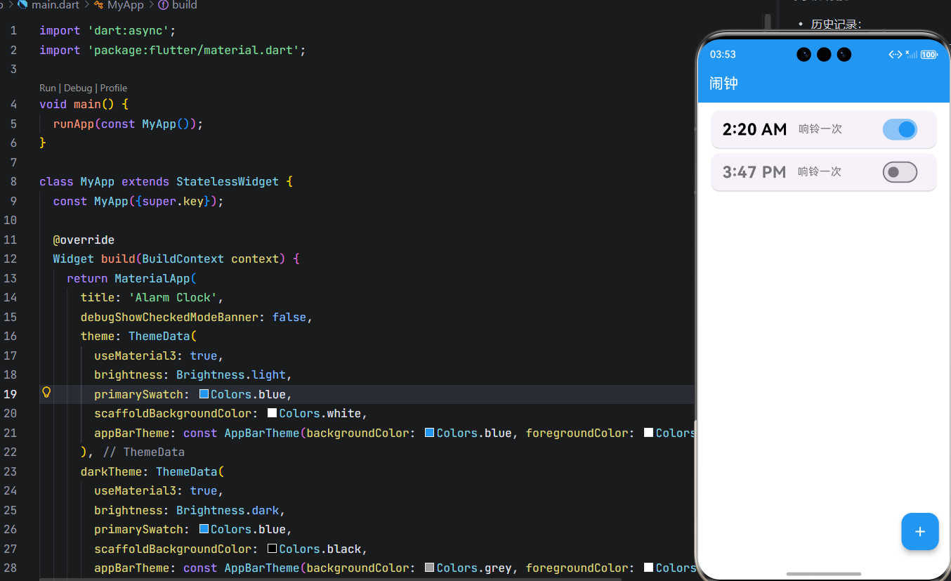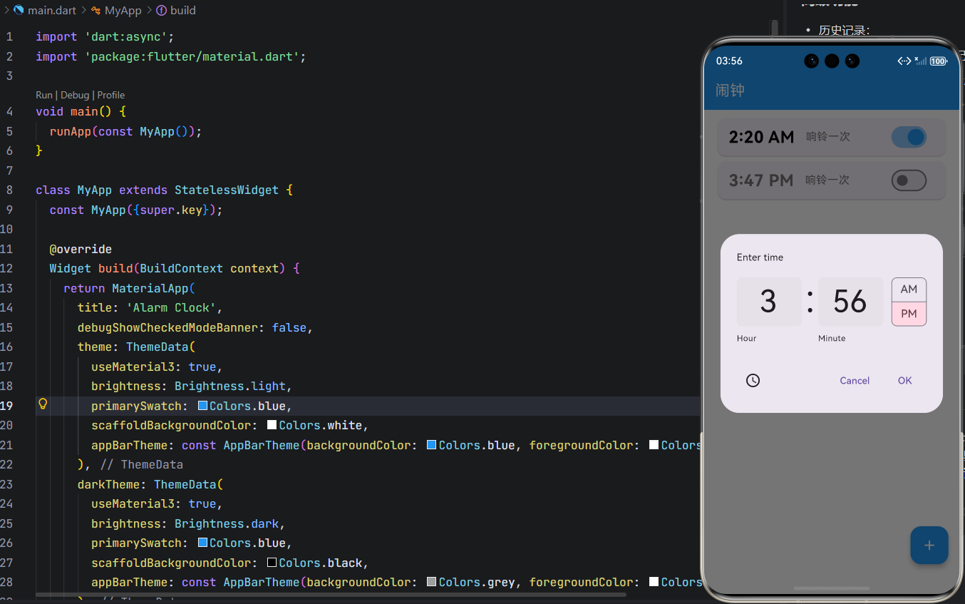 在移动应用开发中,闹钟(Alarm) 是最基础却又最考验细节的功能之一。它不仅要求精准的时间判断,还需具备良好的用户体验:简洁的列表、流畅的交互、可靠的触发机制,以及对深色/浅色主题的完美适配。