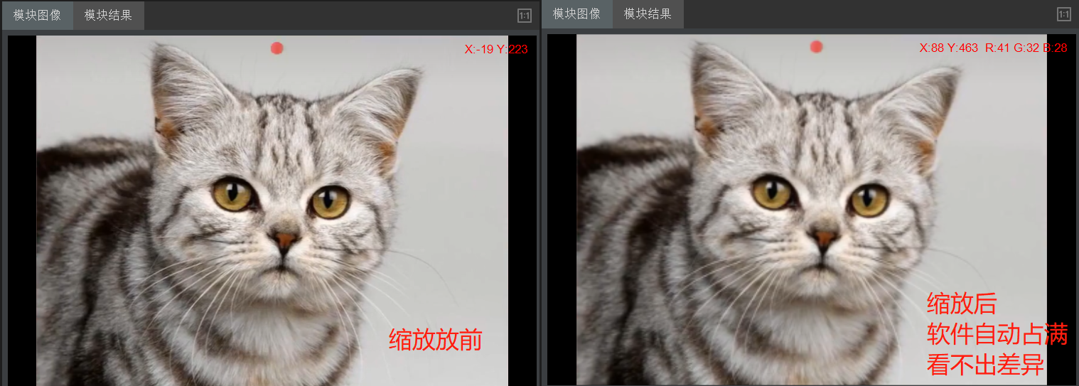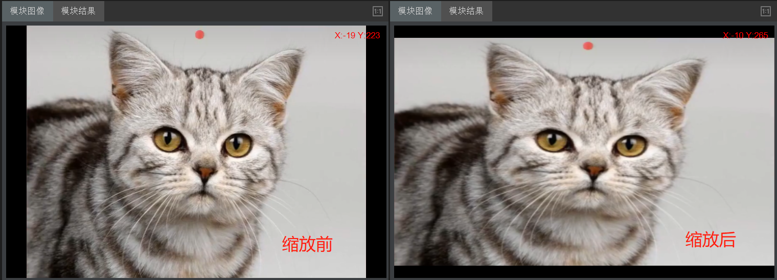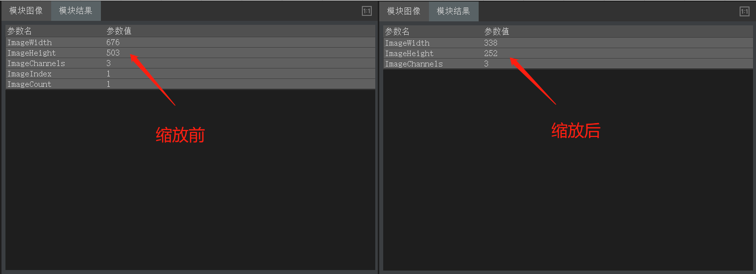 按尺寸缩放与按比例缩放使用同一算子,不同的是参数设置不同。