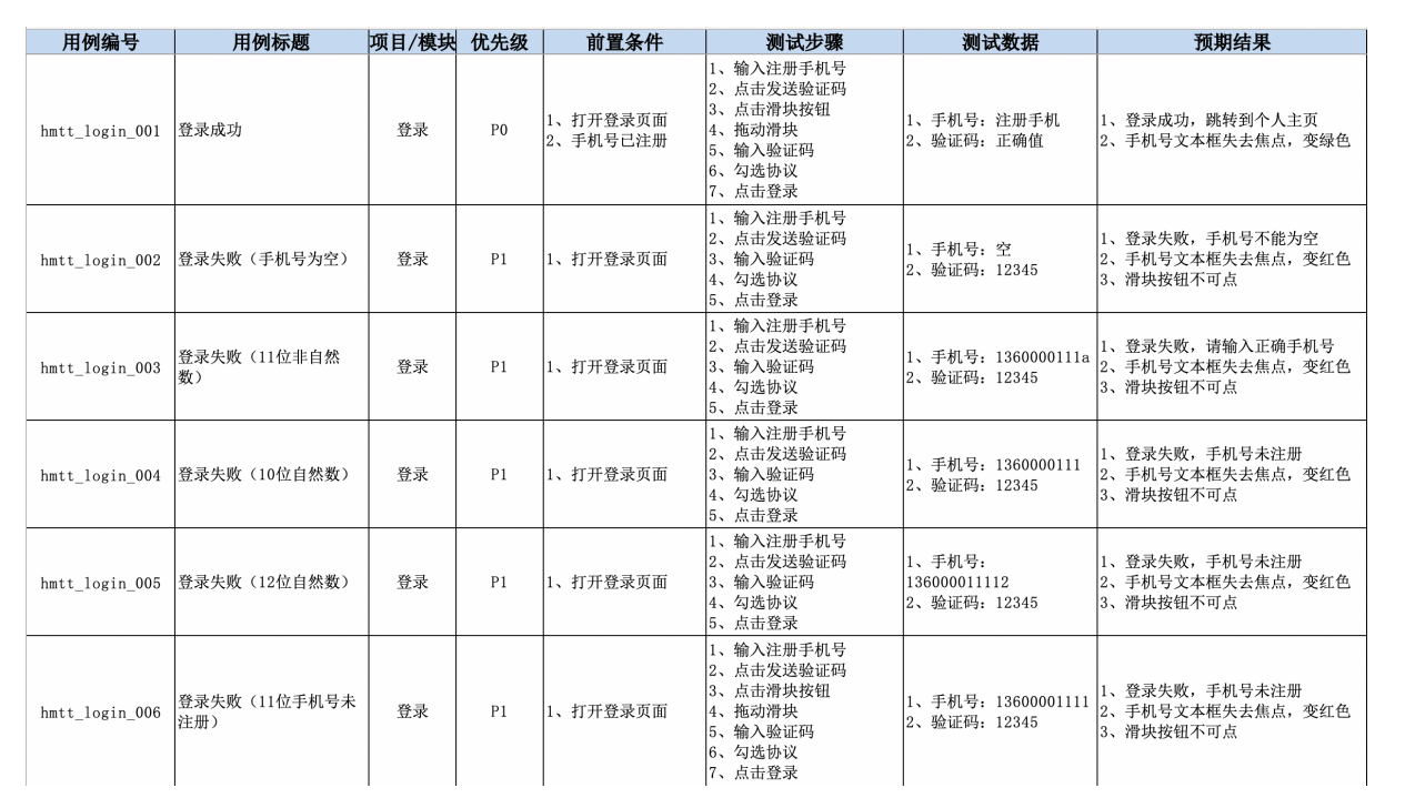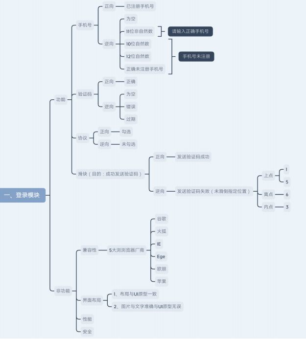 需求 测试点 ⽤例(登录成功、⼿机号逆向) ⽤例(验证码逆向) ⽤例(兼容、布局) 滑块