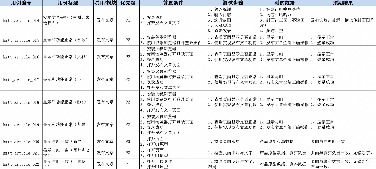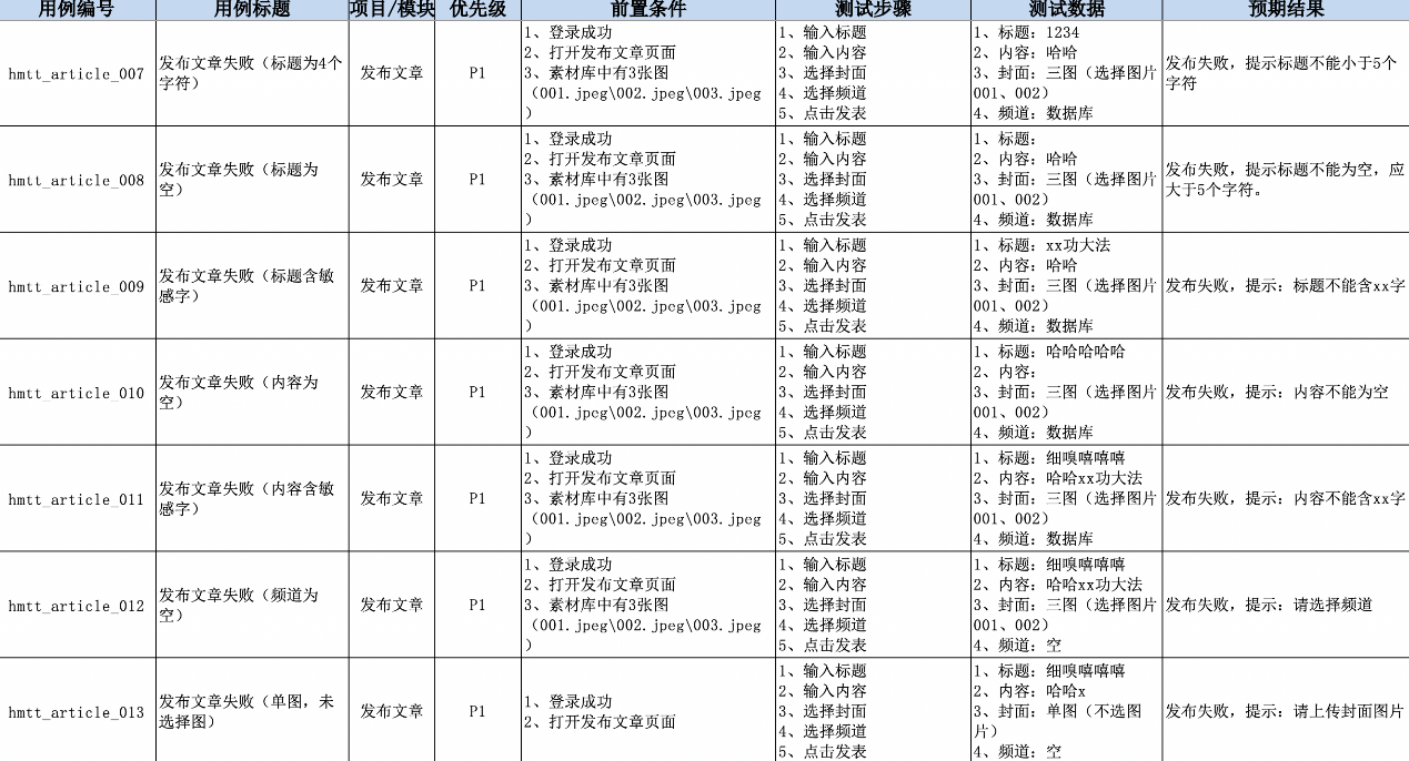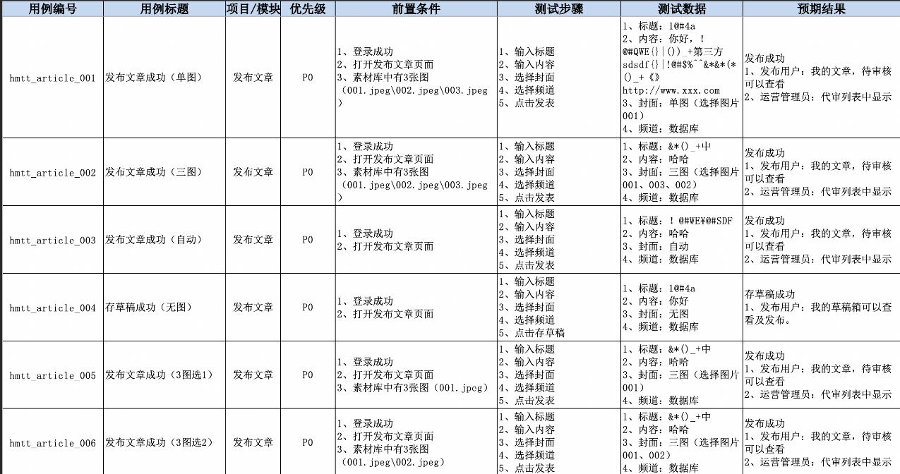 需求 测试点 ⽤例(发布⽂章)