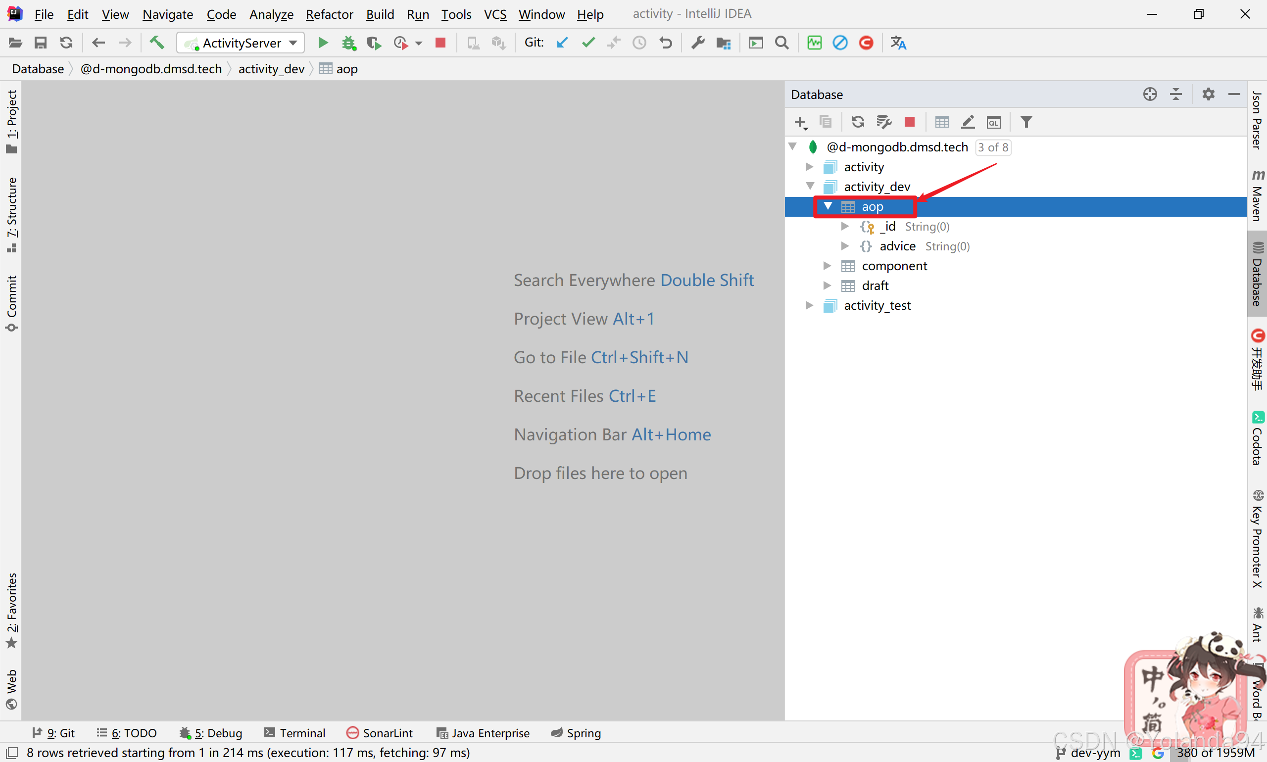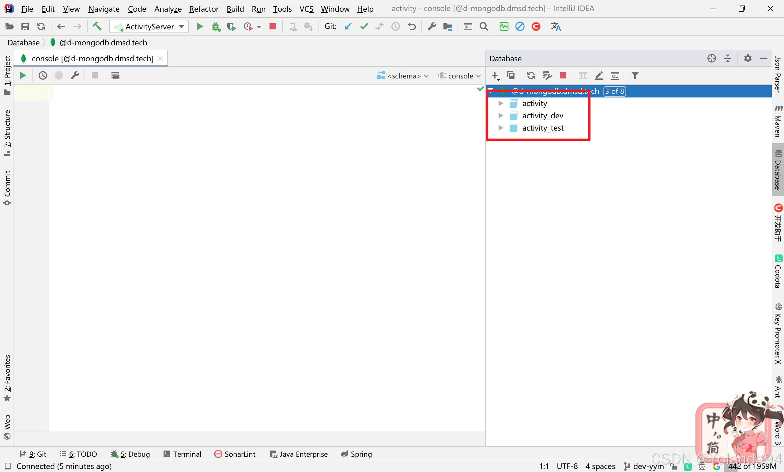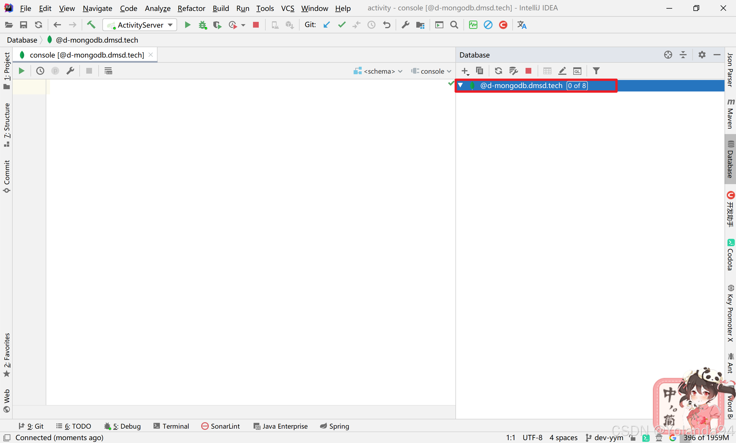 - [二、在Database小窗口上的"Data Source",选择"MongoDB"数据源。](#二、在Database小窗口上的“Data Source”,选择“MongoDB”数据源。)