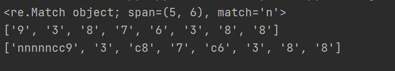 result_1 = re.search('[cn]', message) # 只返回第一个匹配成功的信息