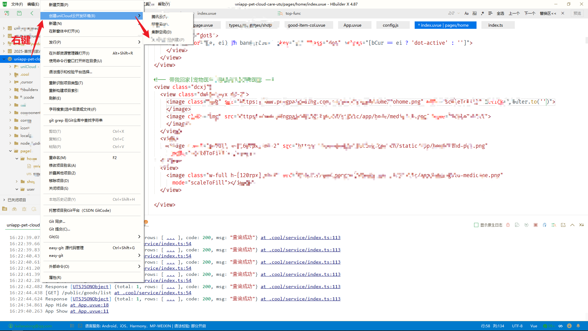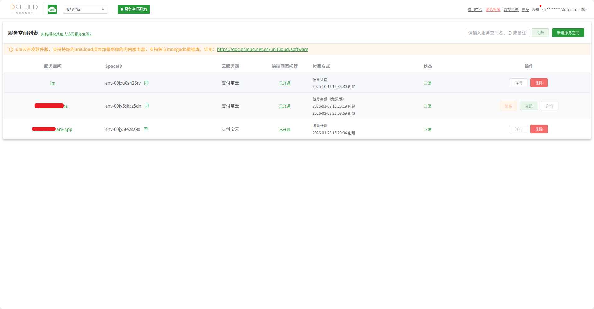 地址:服务空间 - uniCloud