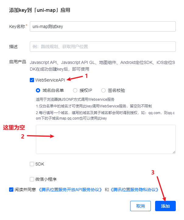 申请腾讯地图的key;