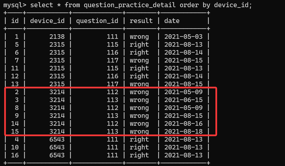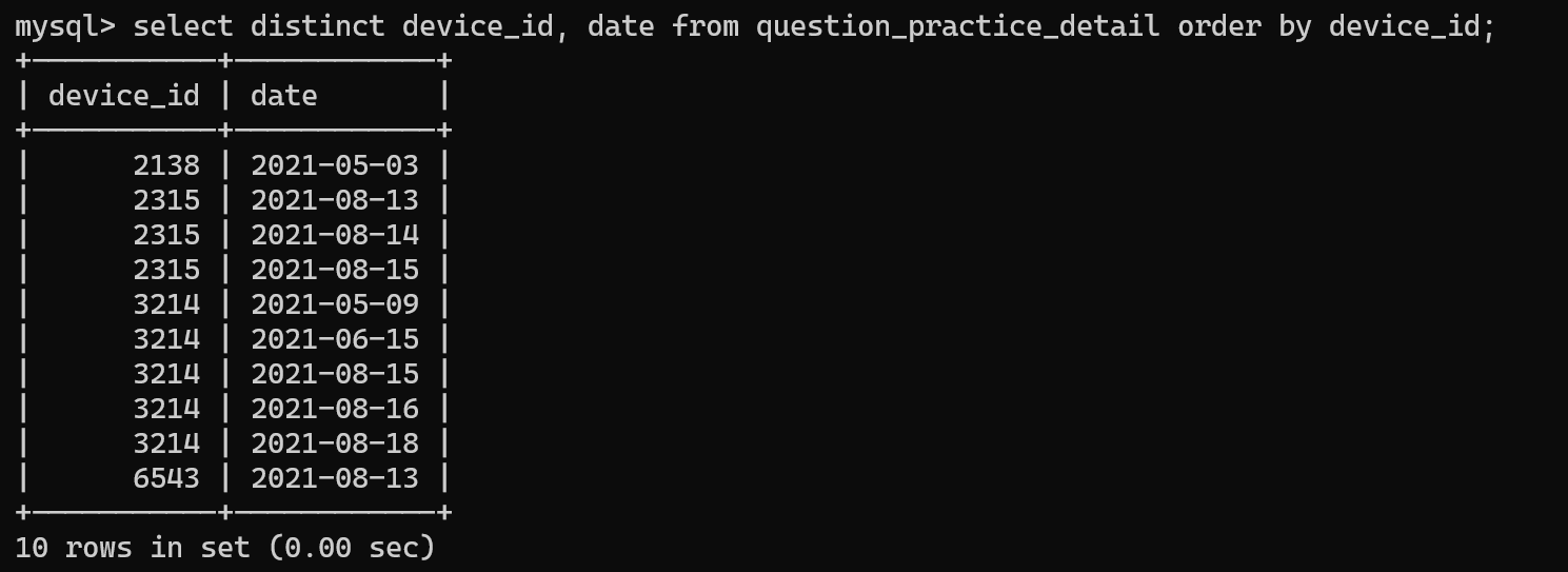 select distinc device_id, date from question_practice_detail