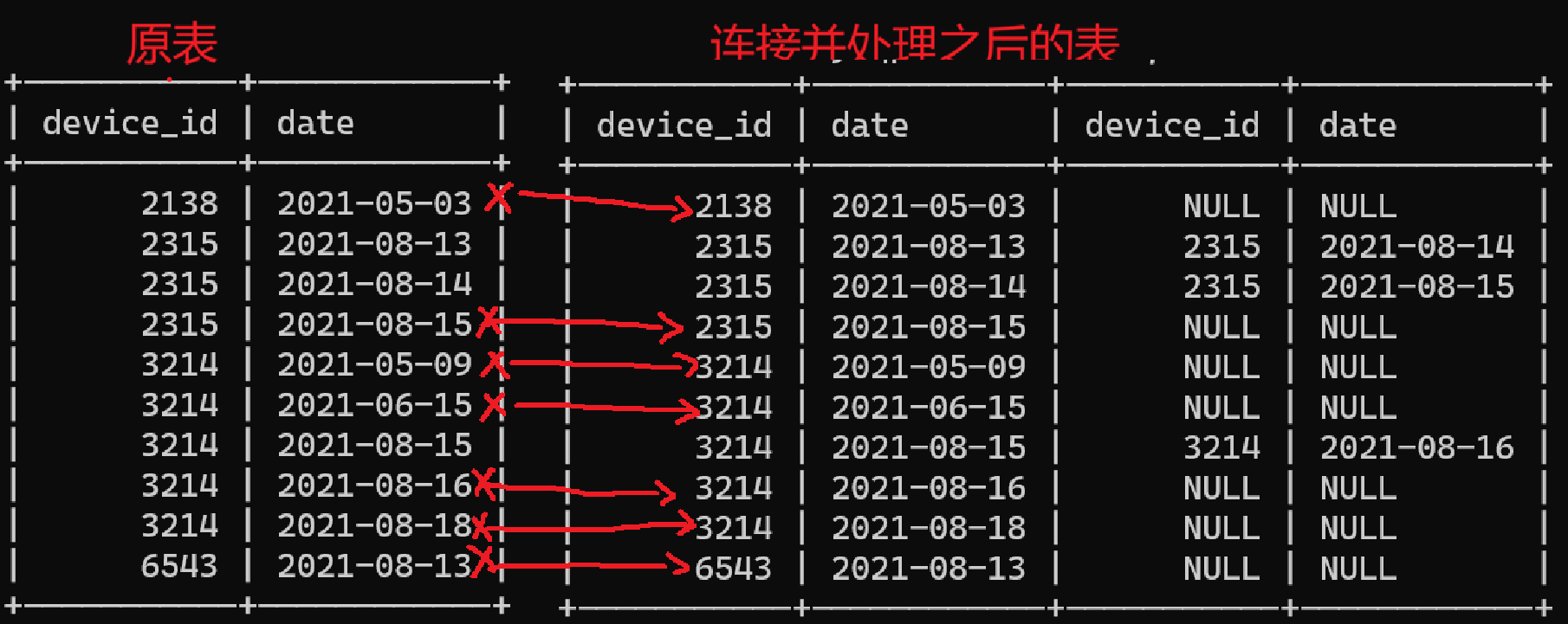 | device_id | date | device_id | date |