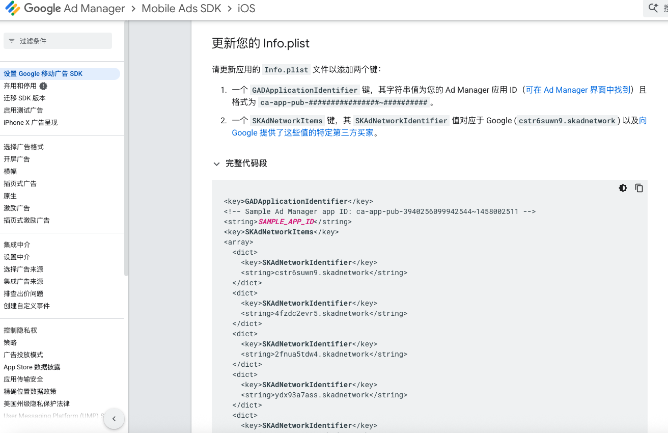1、谷歌文档:https://developers.google.cn/admob/ios/banner/inline-adaptive?hl=zh-cn#objective-c_1