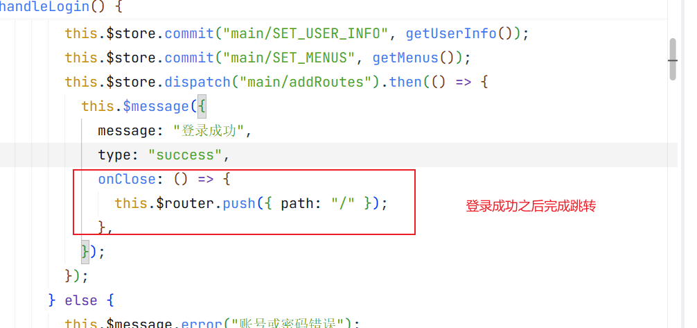 父组件 el-dropdown 用 @command="handleCommand" 监听了这个自定义事件,所以接收到子组件的派发后,就会执行我们写的 handleCommand 方法,并接收参数。