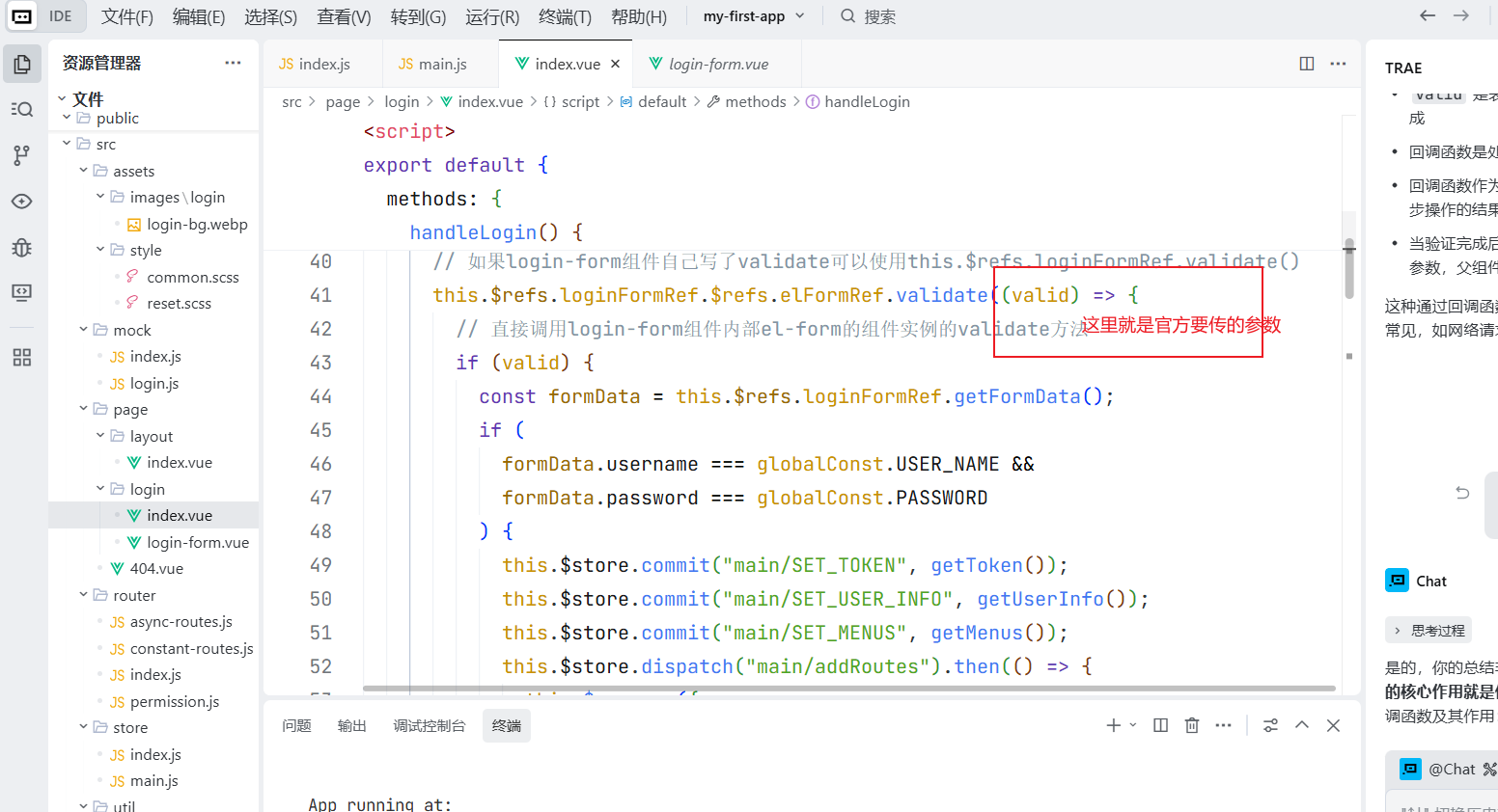 el-form 能精准捕获这两种调用:无参调用标记字段通过,传 Error 参数调用则捕获错误信息并渲染提示。