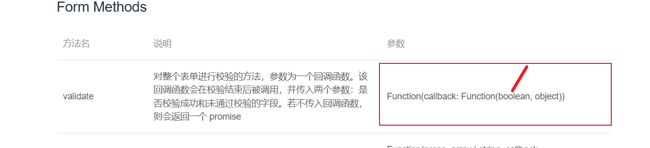 Function(boolean, object):表示这个回调函数本身有两个参数------ 第一个是布尔值(valid,是否通过),第二个是对象(invalidFields,未通过的字段详情)。