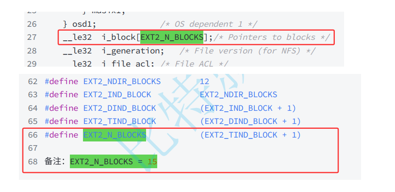 // 备注:EXT2_N_BLOCKS = 15