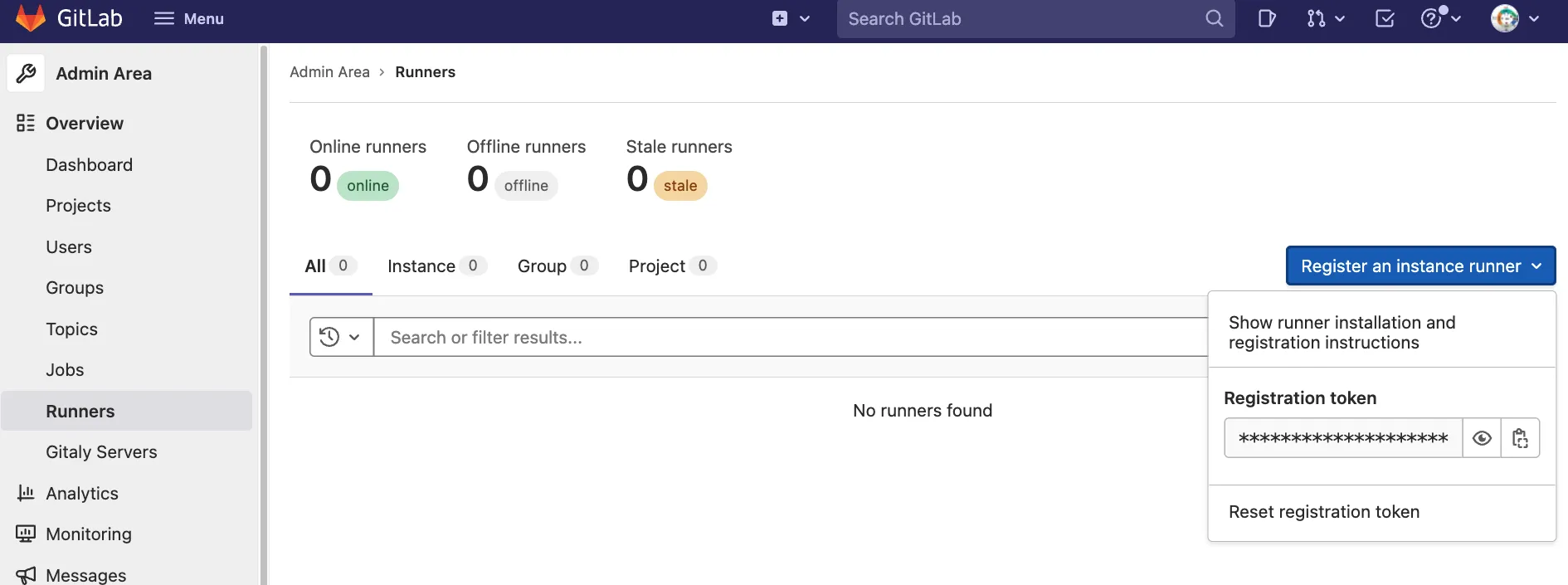 token = "z6QEqyGpDrvzNgfxLiVh" ## Runner token;