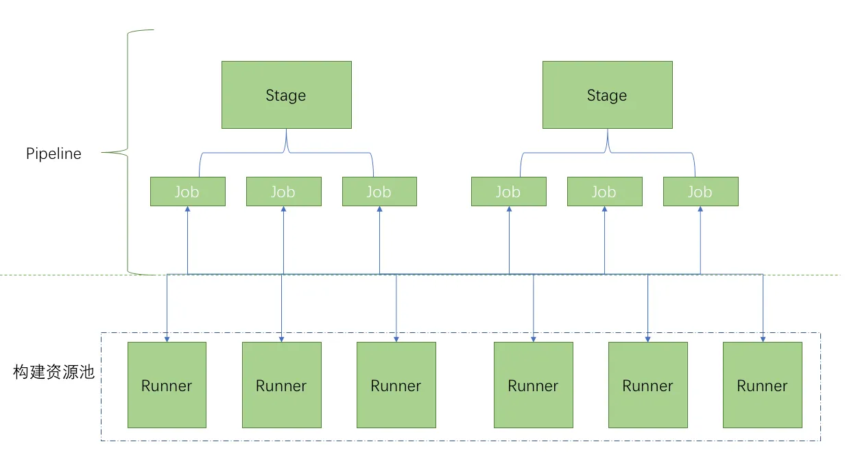 Runner是每个作业的执行节点 ;每个作业可以根据标签选择不同的构建节点;