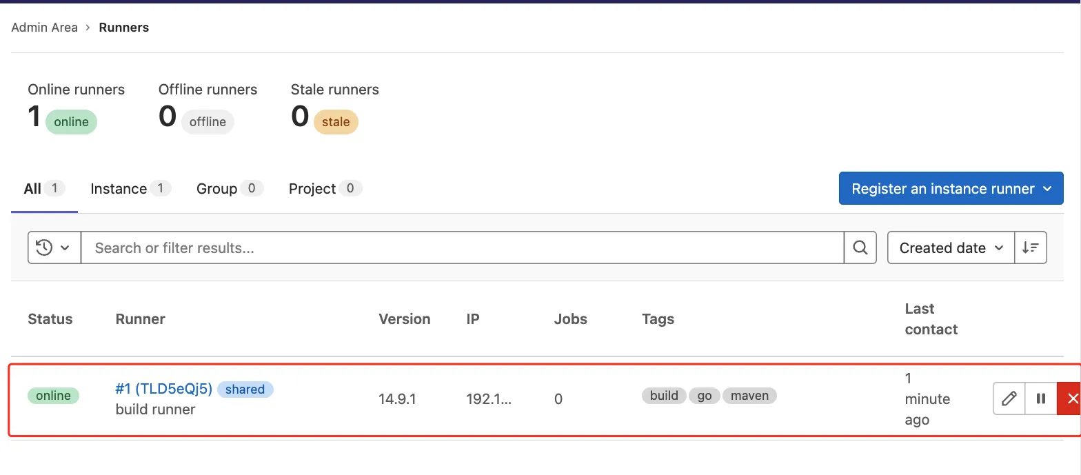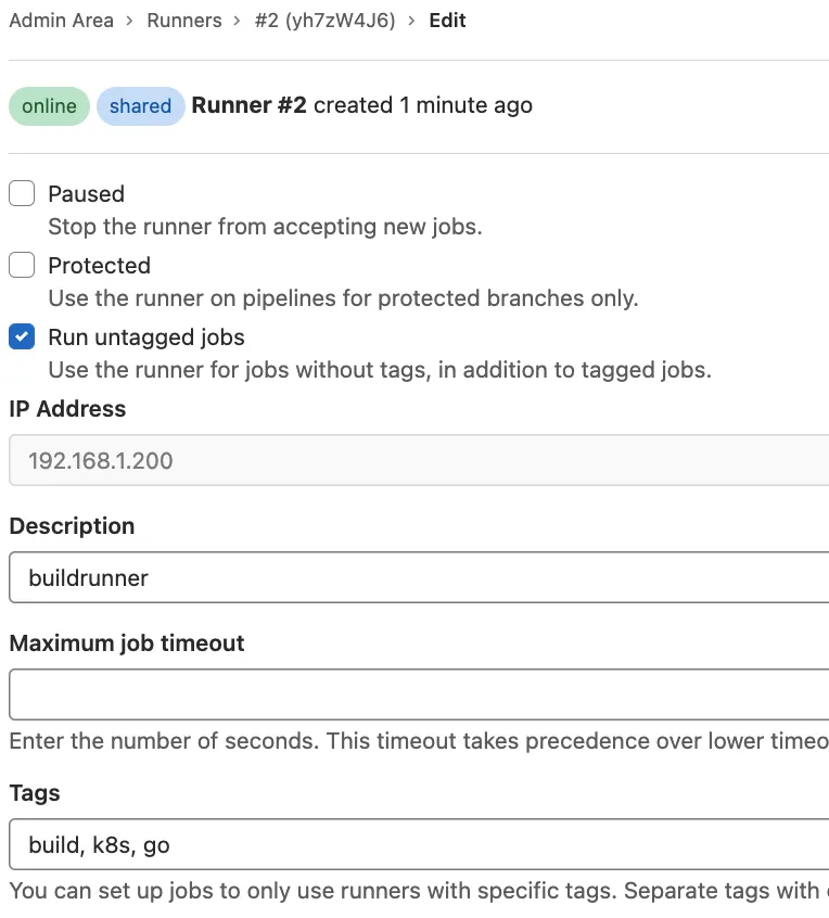 ## 为该Runner配置一个标签(后续作业可以通过tag指定在哪个runner上面运行构建)