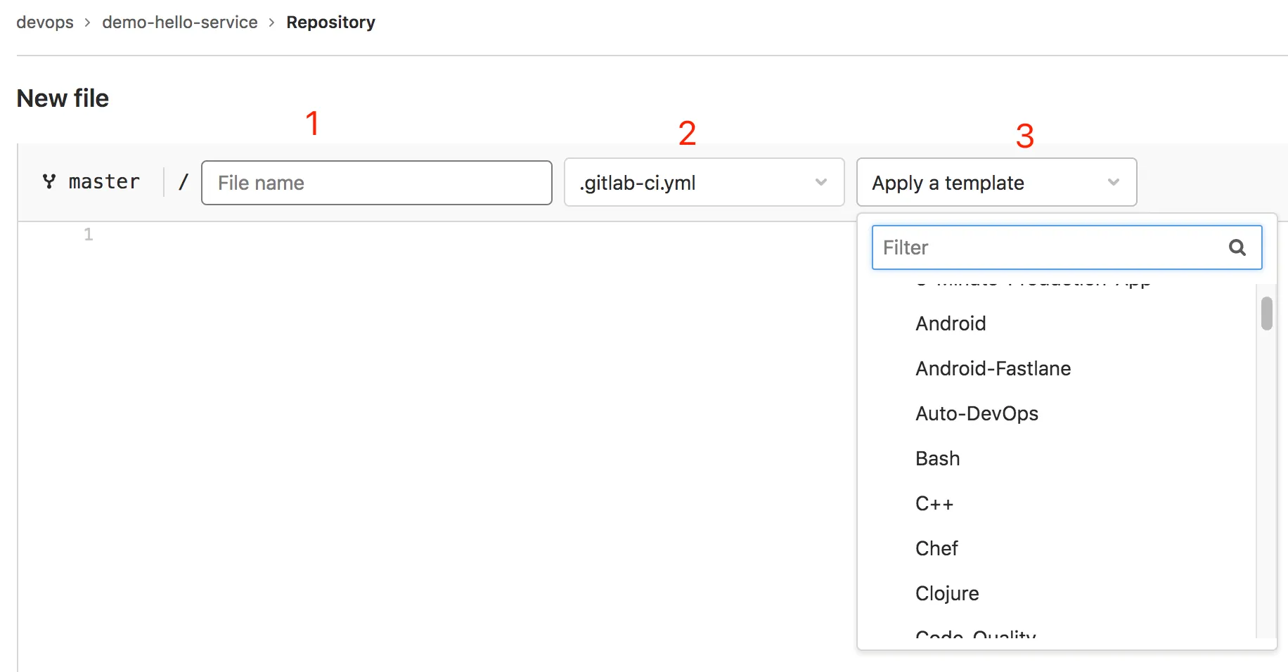 .gitlab-ci.yml; - 2 选择文件的类型;